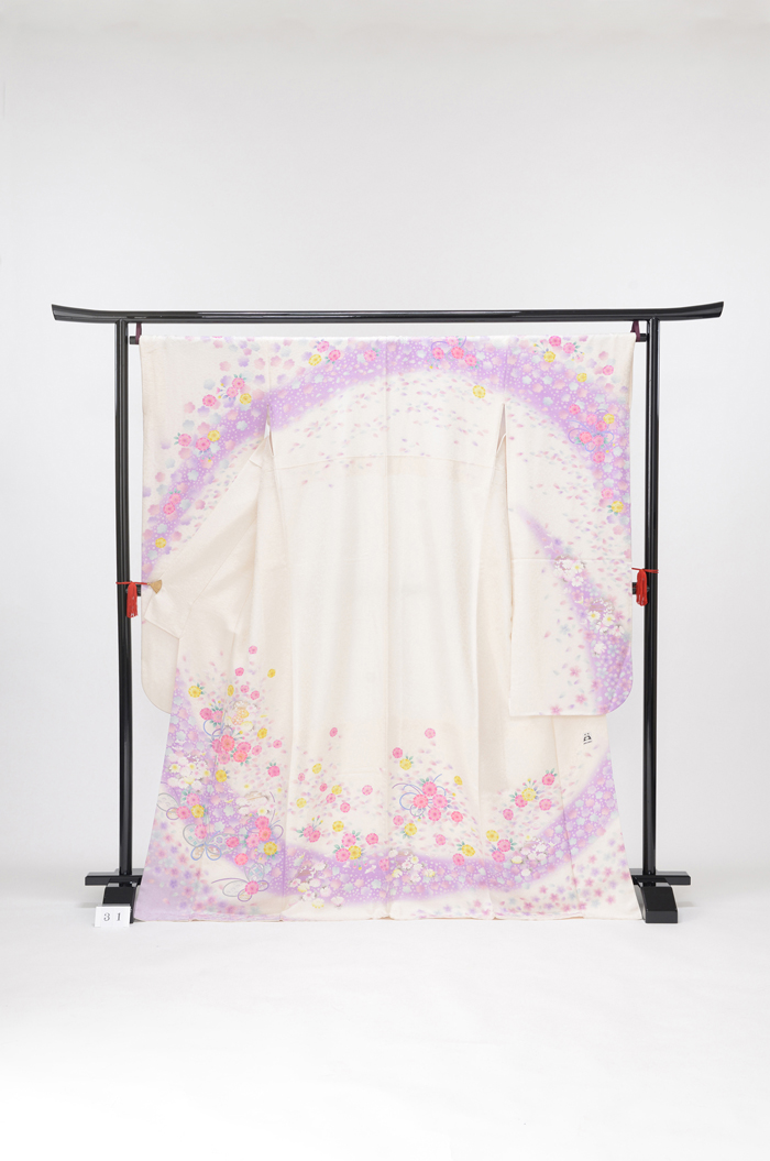 No26:Luxjewelブランド/白×紫 乱菊 牡丹 地ドット柄